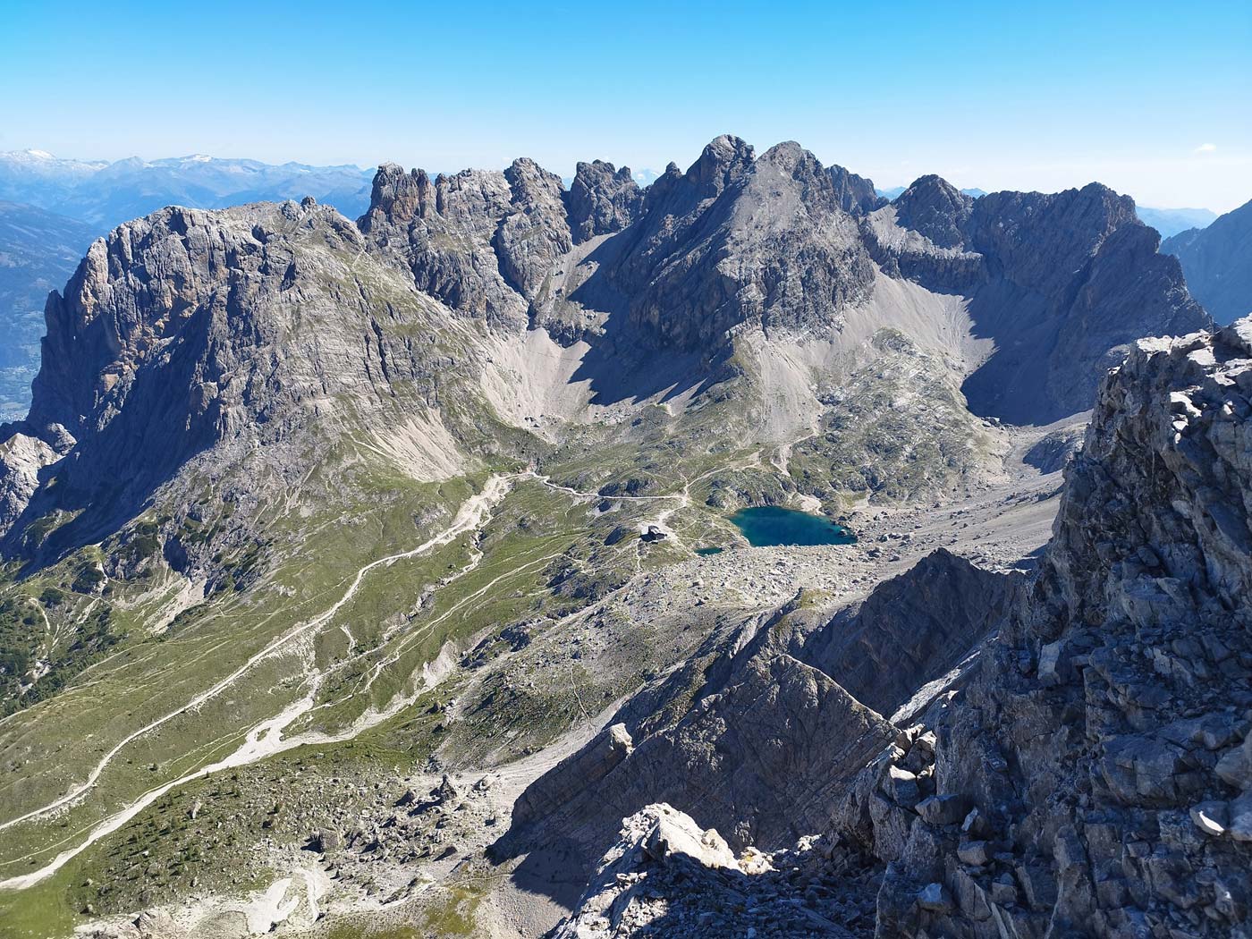 Nachdem wir nun wieder unterhalb des Gipfels waren, entschieden wir uns noch kurzerhand einen Abstecher auf der Kerschbaumalm zu machen (Gehzeit ca. 2 Stunden). Nach einer leckeren Frittatensuppe als Stärkung gingen wir dann über das Kerschbaumtörl zurück zur Karlsbader Hütte und genossen dort die letzten Sonnenstrahlen des Tages.